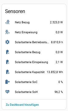 Nochmals Danke für deine Antworten. Dank des weiter oben erwähnten ESPHome basierten Controllers erhalten wir nun Werte wie SoC usw. direkt von der Batterie und können damit …