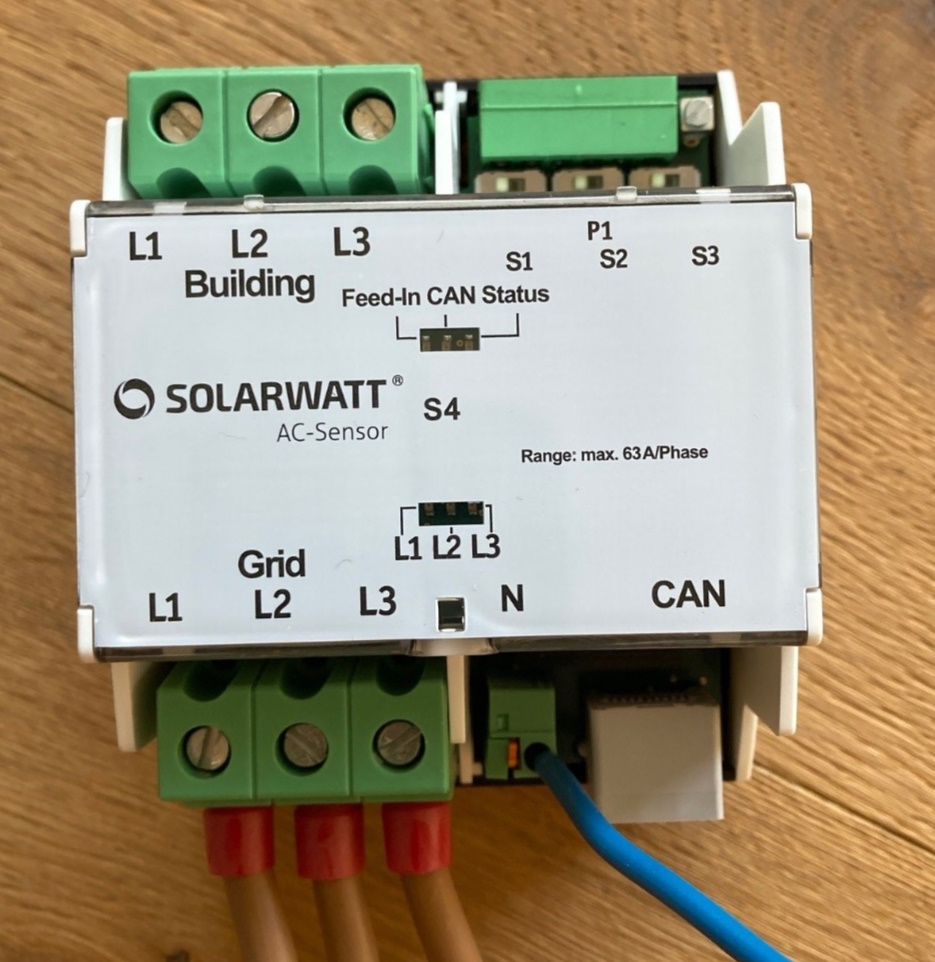 Der Batteriespeicher ist mit dem Solarwatt AC-Sensor über CAN-Bus verbunden und hat intern sein Batteriemamagement.