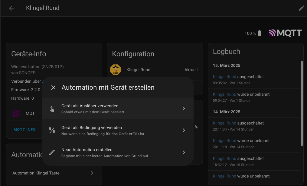 Dann eine Automation erstellen. “Gerät als Auslöser verwenden”