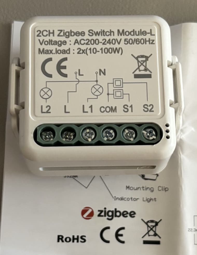 Ich habe zwei Taster parallel an S1 und S2 des SONOFF ZBMINI-L2 angeschlossen, das Ein- und Ausschalten des Relais über die Taster funktioniert problemlos. Auch das Ein- und Ausschalten über HA funktioniert.