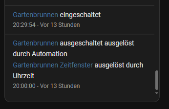 Ja, ich glaub, um 20:29 hab ich selbst den Brunnen abgeschaltet (via HA). Ehrlich gesagt, ich kenn mich gar nicht mehr aus