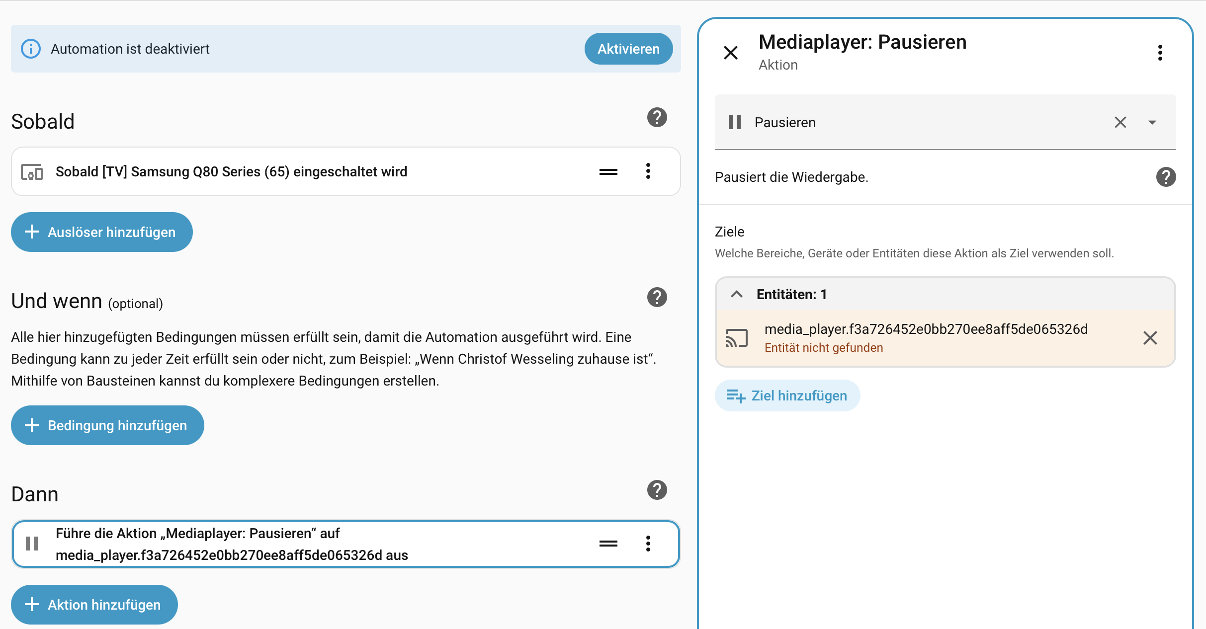 Erst im nächsten Schritt würde ich die (derzeit deaktivierte) Automation anpassen.