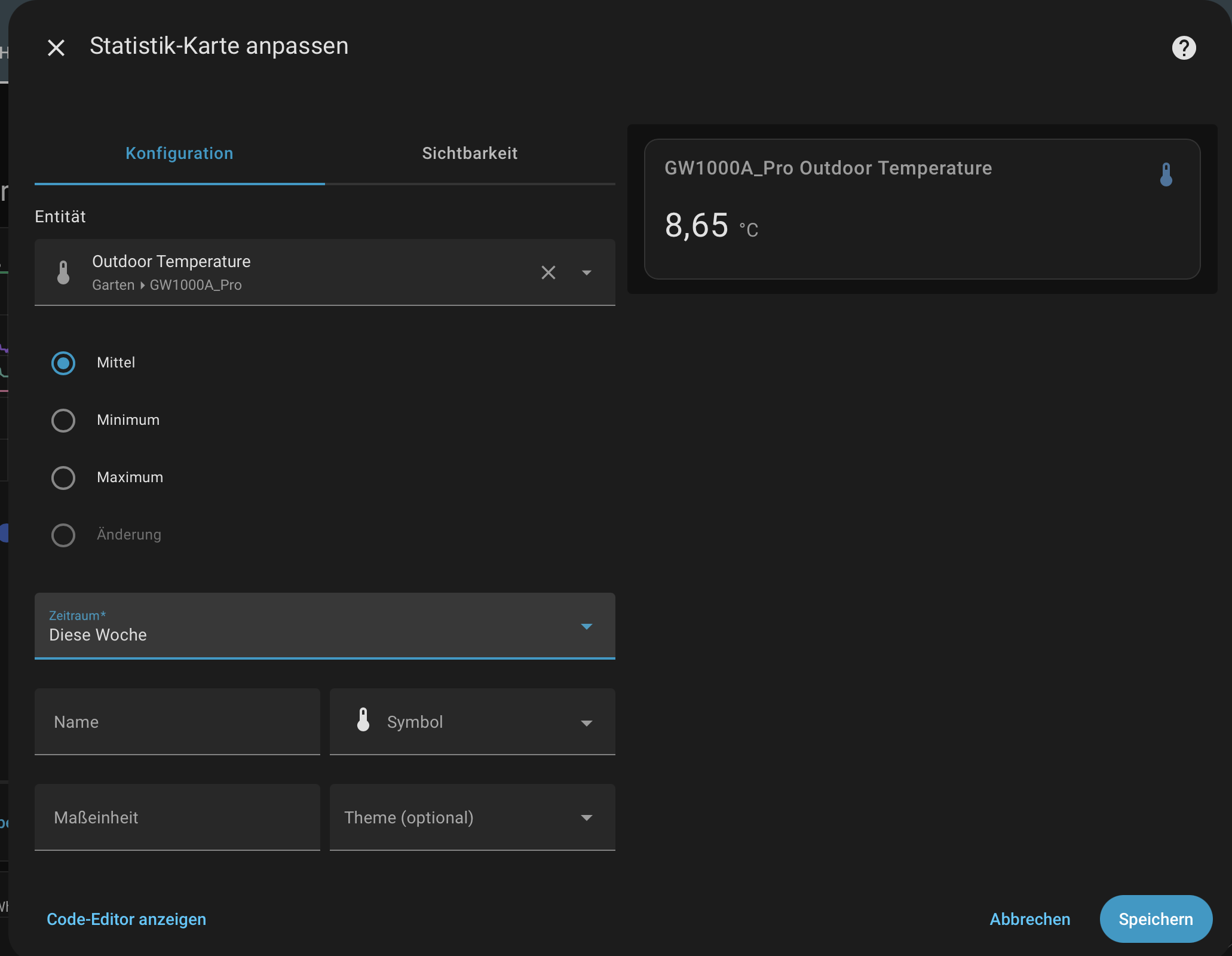 Ist es möglich den Durchschnitt eines Sensors mit diesen Intervallen anzuzeigen. Mit STATISTIK kriege ich es nicht hin weil ich dort nur eine Anzahl Stunden angeben kann aber kein Intervall.