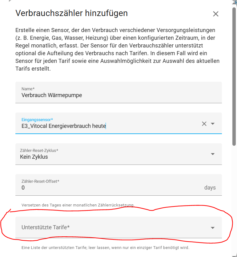 Auf dem Energy Bord wird auch alles angezeigt. Aber ich würde es mir gerne als Entität auf dem normalen Dashboard anzeigen lassen. Am besten halt unterteilt in täglich, wöchentlich, monatlich usw. Das funktioniert gut mit dem Helfer Verbrauchszähler. Nur den Tarif bekomme ich da irgendwie nicht rein.