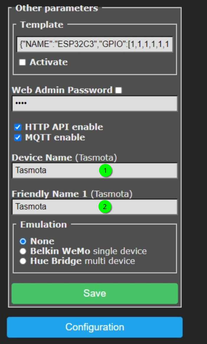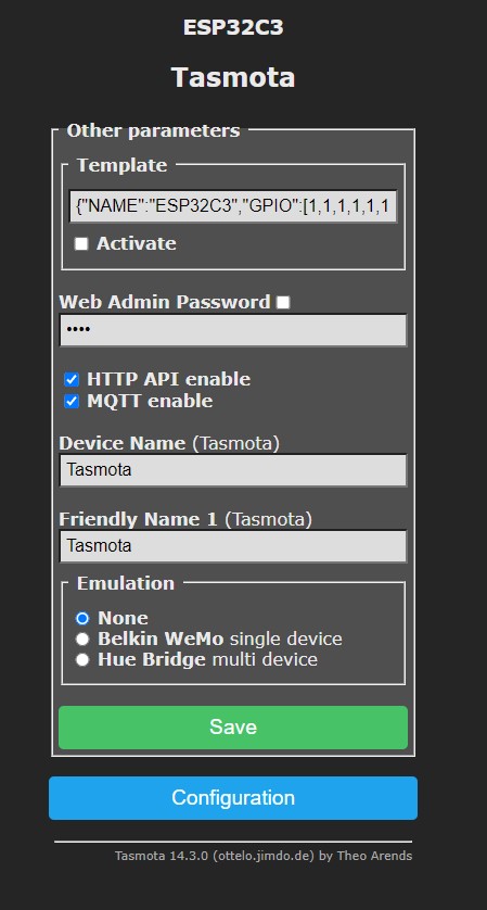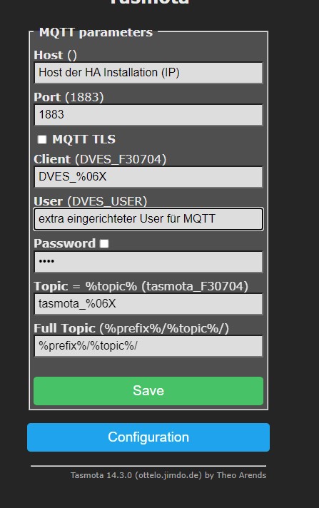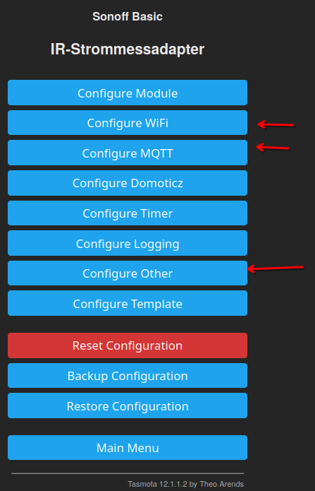 Die gleichen Daten habe ich nun in der Tasmota Oberfläche des Lesekopfes eingegeben.