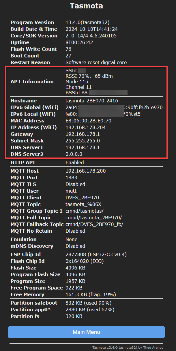 Hat der Lesekopf eine fest zugewiesene IP im Router, denn zu Anfang baut ja jedes Tasmota Gerät einen eigenen Accesspoint auf und Du musst in dann in Dein Netzwerk über Deine SSID einfügen und einmal neu starten, dann die MQTT-Konfiguration machen.