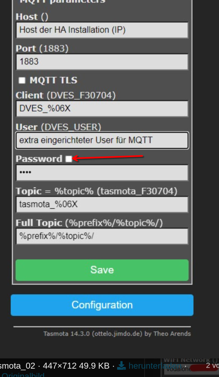 Aber sobald ich die MQTT config Daten eintrage und er neu startet, verliert er die Verbindung - wie ganz am Anfang.