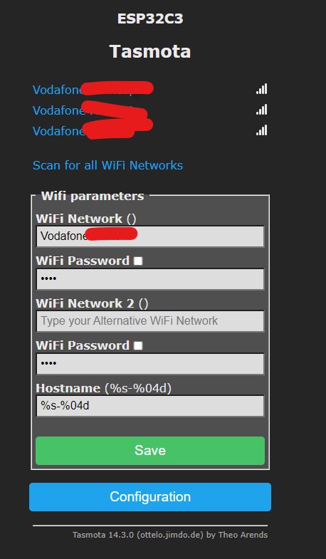 WLAN konfig klappt - er wird erkannt und ich komme auch die Tasmota Seite.
