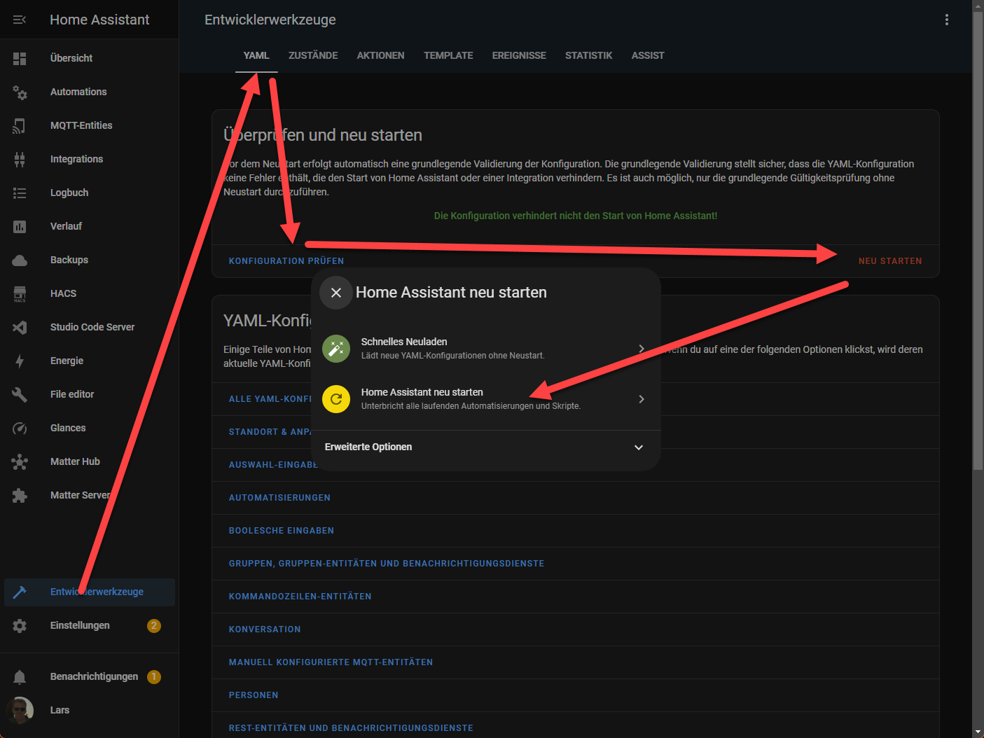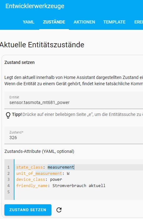 So habe ich ja wie oben erwähnt eine Tasmota Dose eingebunden, die läuft.