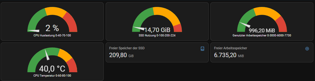 Das ist die Auslastung meines Mini-PC’s ( https://www.amazon.de/dp/B0C1ZPND7K?th=1 ) mit einem N95, 8GB Ram und 256GB SSD. Die bunte Beleuchtung und den Lüfter habe ich abgeklemmt.