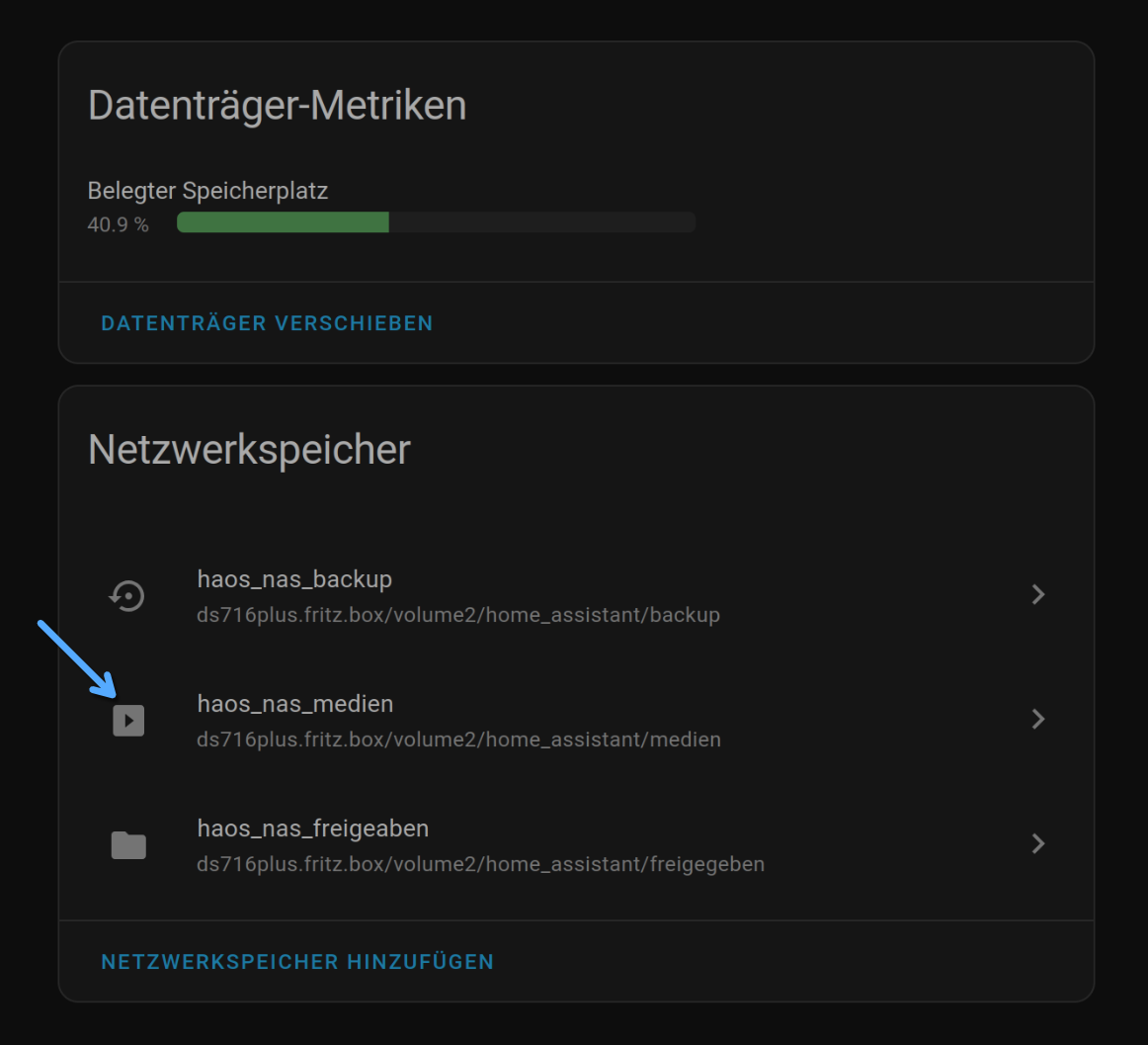 Der Netzwerkspeicher ist folgender. Der funktioniert auch, weil dort schon erfolgreich seit Monaten die HA Backups landen.