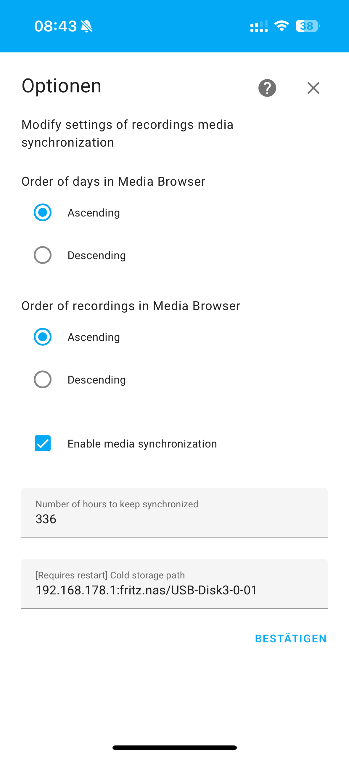 Alle Cams haben eine SD Karte und zeichnen dort diverse Erkennungen auf. Mein Gedanke war nun, diese Aufzeichnungen auf meinen an HA angeschlossenen NAS der FritzBox zu „backupen“. Also sobald eine Cam einen Clip auf ihre SD schreibt, soll sie diesen auch auf meinen NAS Stick schreiben. Ich dachte dafür ist die Mediasynchronisation gedacht, aber ich verstehe absolut nicht welchen Pfad ich hier angeben muss.