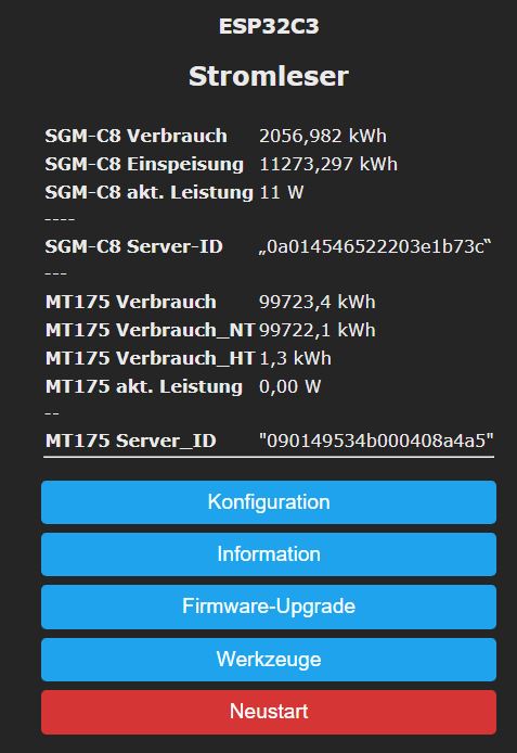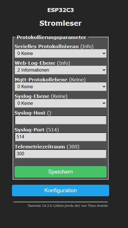 Es ist mir auch inzwischen gelungen, die Tasmota-Oberfläche des Zählers über die Website-Karte einzubinden, zumindest die halbe Miete.