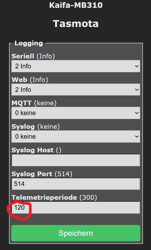 Also im Sekundentakt. Mit der Einstellung unter Teleperiode wird das Intervall für die restlichen Daten eingestellt. Also 120Sekunden = 2Minuten, in meinem Beispiel.