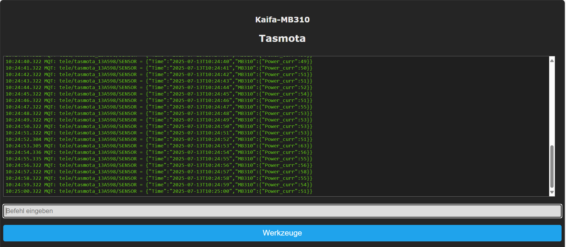 Die Werte für z.B. Leistung Brauchstrom ändern sich in der Tasmota-Web-Seite (also wenn ich im Browser direkt die IP des Gerätes eingebe) mind. sekündlich.