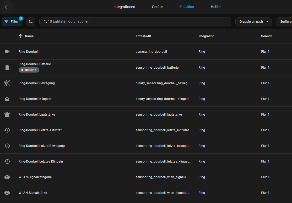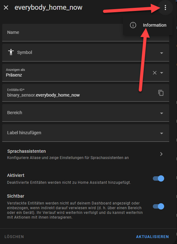 Entität auswählen → 3 Punkte → Zusatzinformationen → die Integration anklicken .