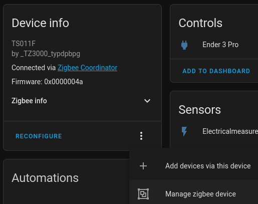 Hi all, I had a problem with my Aliexpress Tuya TS011F / TZ3000 Zigbee plug that it randomly turned off. Spending some time in Google found people suggesting that a firmware update solved it for them. This guide should work for any OTA update...