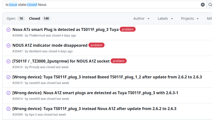 Das die Nous-Steckdosen fälschlicherweise plötzlich als Tuya-Geräte erkannt werden, war mir gestern auch aufgefallen. Ich vermute, der Fehler hat sich mit dem letzten Z2M-Update auf 2.6.3-1 eingeschlichen. Bei 2.6.2- passte noch alles.