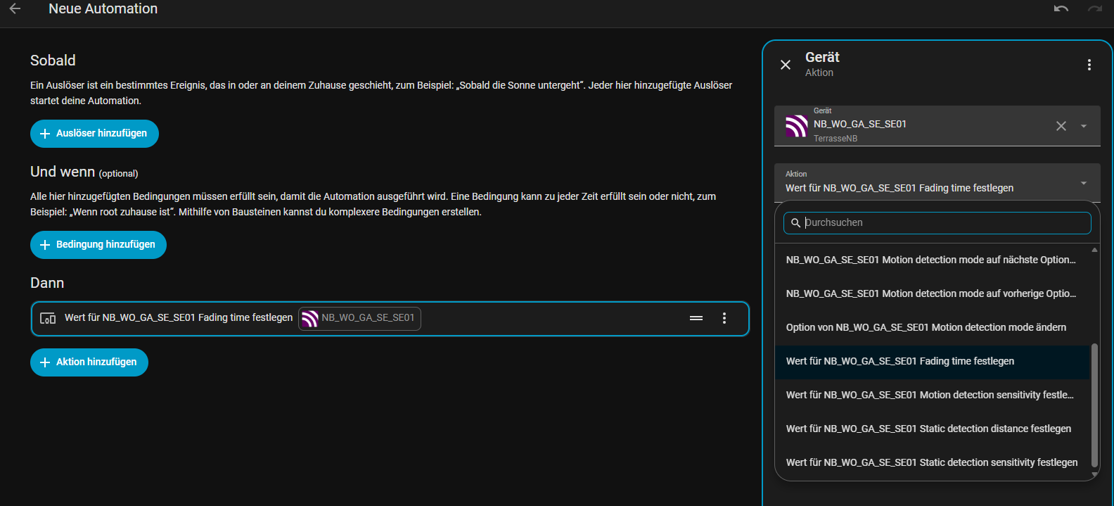 Wenn Du aber den Erfassungsbereich ändern willst, kann ich nichts dazu segen, da ich den Sensor über Thread betreibe und man dann eh nicht den Erfassungsbereich einstellen kann. Ich habe keine Ahnung, ob das über Zigbee geht.