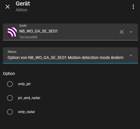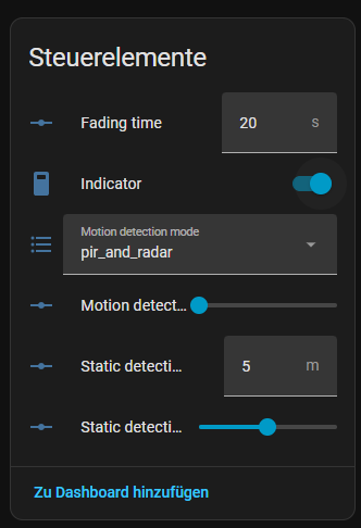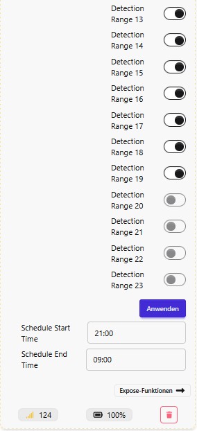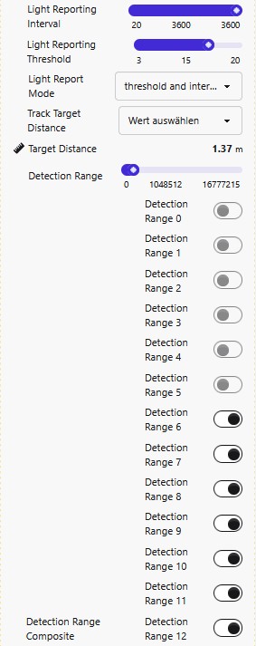Aber ich denke, dass Du mit einer Automation einfach abends die Detection Range 0..5 auf aktiv gesetzt werden können und morgens schaltest Du diese wieder aus