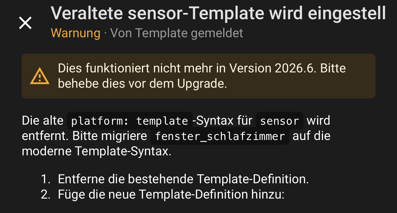 Ersetze ich nun 1:1 den bisherigen Code mit dem von HA vorgeschlagenen, finde ich die Entität nicht mehr…