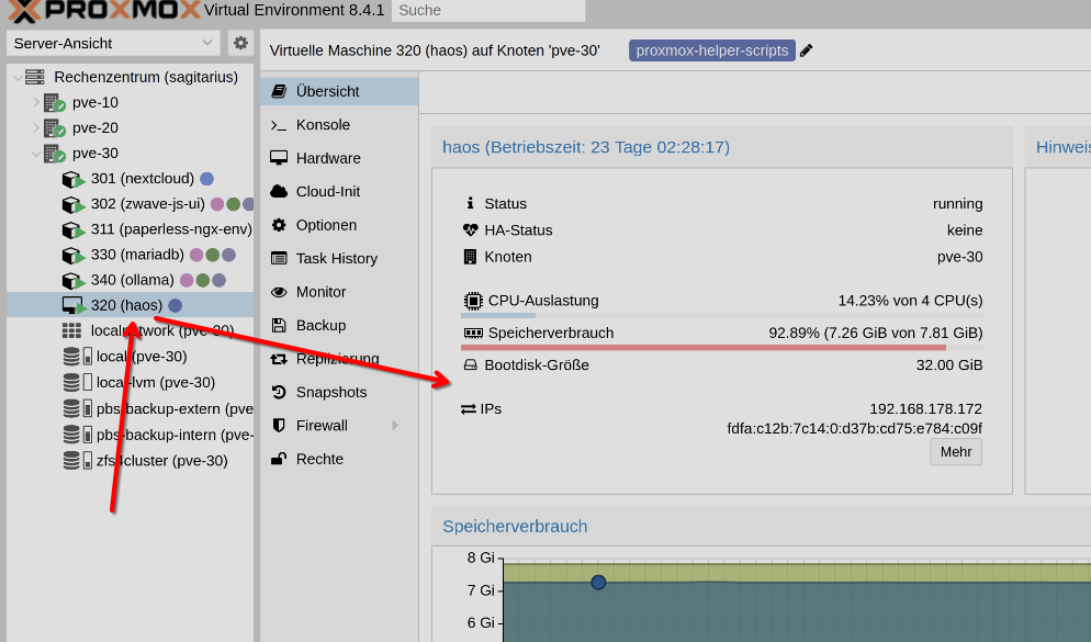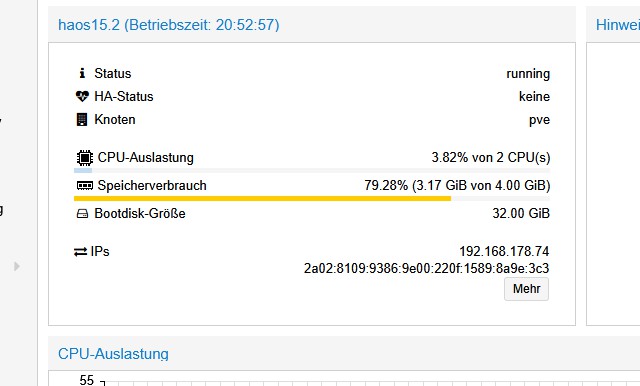 Ja, bei VMs muss man mehr machen als nur in Proxmox dem virtuellen Laufwerk mehr Speicher zuweisen, nach der Zuweisung, weis das Betriebssystem das in der VM läuft, noch nichts vom zusätzlichen Platz, der muss dann dem lokal sichtbaren Laufwerk hinzugefügt werden, aber auch das sprengt das Thema und gehört hier nicht her, in den meisten Fällen reichen 32 GB für HAOS vollkommen aus.