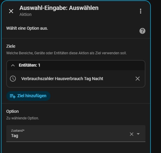 Das ist meine aktuelle Automatisierung zum Verbrauchszähler “Energie” mit den drei Tarifen nacht, tag, abend.