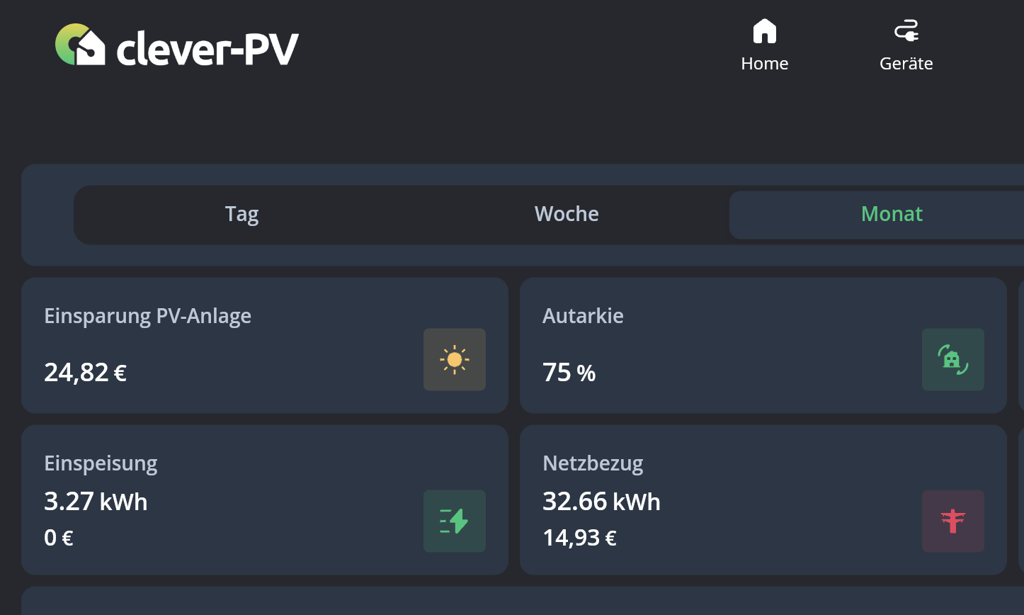 So, also. Hier zwei Messmethoden basierend auf dem Poweropti. 1 x CleverPV Tageswert, 1 x CleverPV Monatswert, 1 x HA Dashboard. Dazu noch der Screenshot vom Helfer und dem, was man von ihm hinter dem Zahnrad NICHT sehen kann. Machen oder lassen.