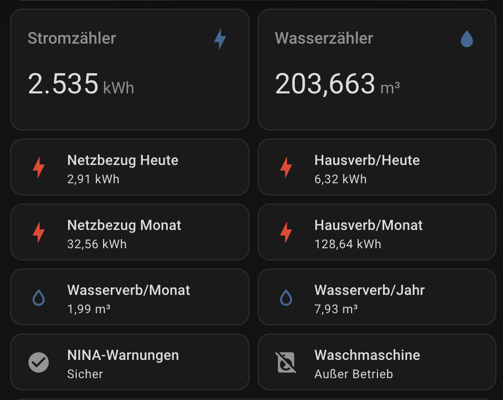 Der Helfer muss basieren auf dem aktuellen Verbrauchswert. Auch, wenn der in Watt läuft. Mach’s nochmal - erstelle einen Helfer, nimm den Sensorwert von aktuellen Verbrauch und dann lass ihn täglich zurücksetzen. So kommst Du auf den Tagesverbrauch. Genau so machst Du es dann für die Woche, den Monat, das Jahr. Wie das dann aussieht erkennst Du im Screenshot unten. Bei Fragen fragen.