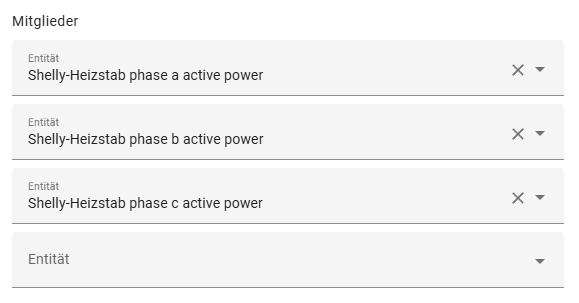 Ein Verbrauch über die Zeit kann nur mit Sensoren erfolgen, die die Einheit kWh haben (Energie). Du hast dort Leistungssensoren (W), damit geht das nicht. Diese müssen erst mit dem Integralsensor in kWh umgewandelt werden und die neu erstellten Sensoren können dann als Grundlage eines Verbrauchssensors dienen. Oder du schaust, ob der Heizstab direkt einen Sensor mit kWh (oder Wh) bereitstellt.
