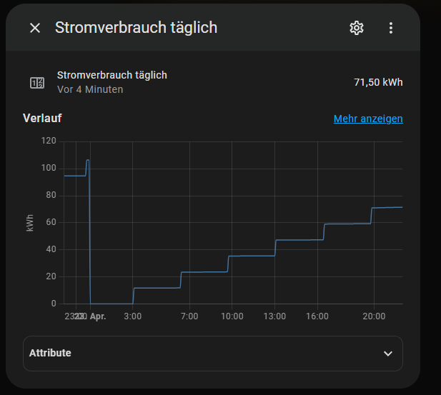 Ich habe aber auch folgendes Problem mit dem Verbauchszähler das er immer alle 3 Stunden plötzlich einen Ausreißer hat.