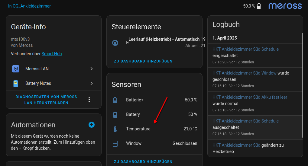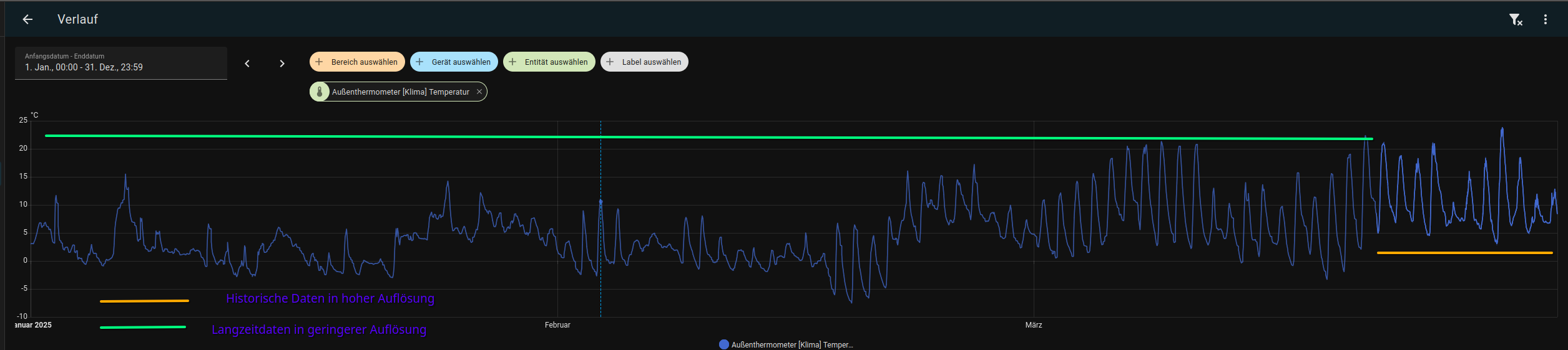 Die Temperatur selbst hat eine eigene Entität mit Langzeit Statistik.