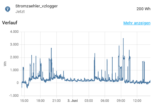 Jetzt habe ich aber schon einen Volkszähler, der mir die Werte meiner Zähler ausliest. Den habe ich inzwischen an MQTT “angeschlossen” und der produziert auch nette Werte.