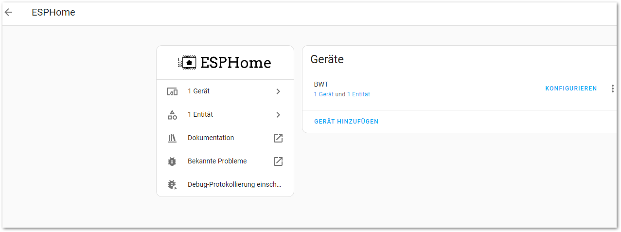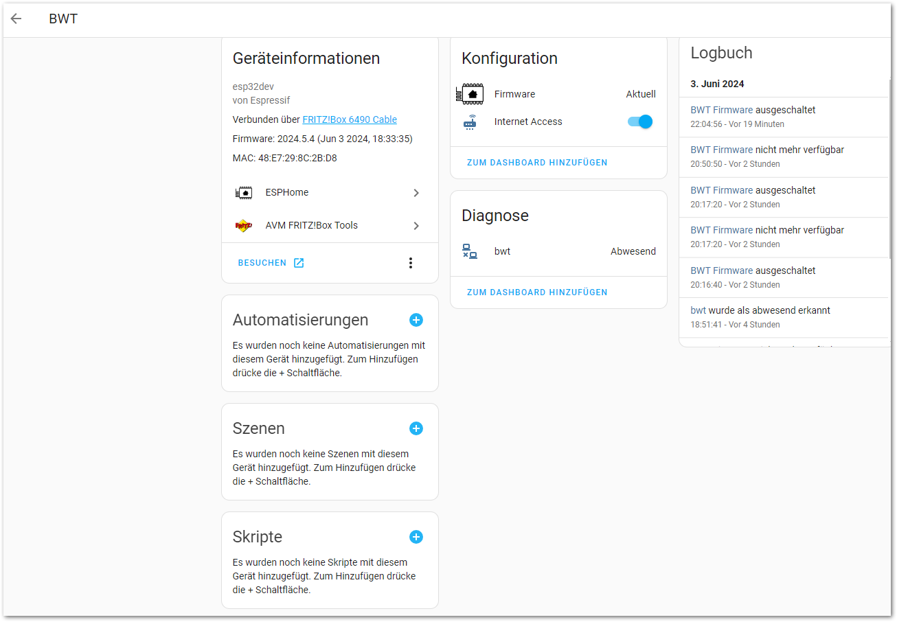 Habe über ESP Home die LOGs aufgerufen, sieht sauber aus. Einige Minuten gewartet, dann geschlossen.
