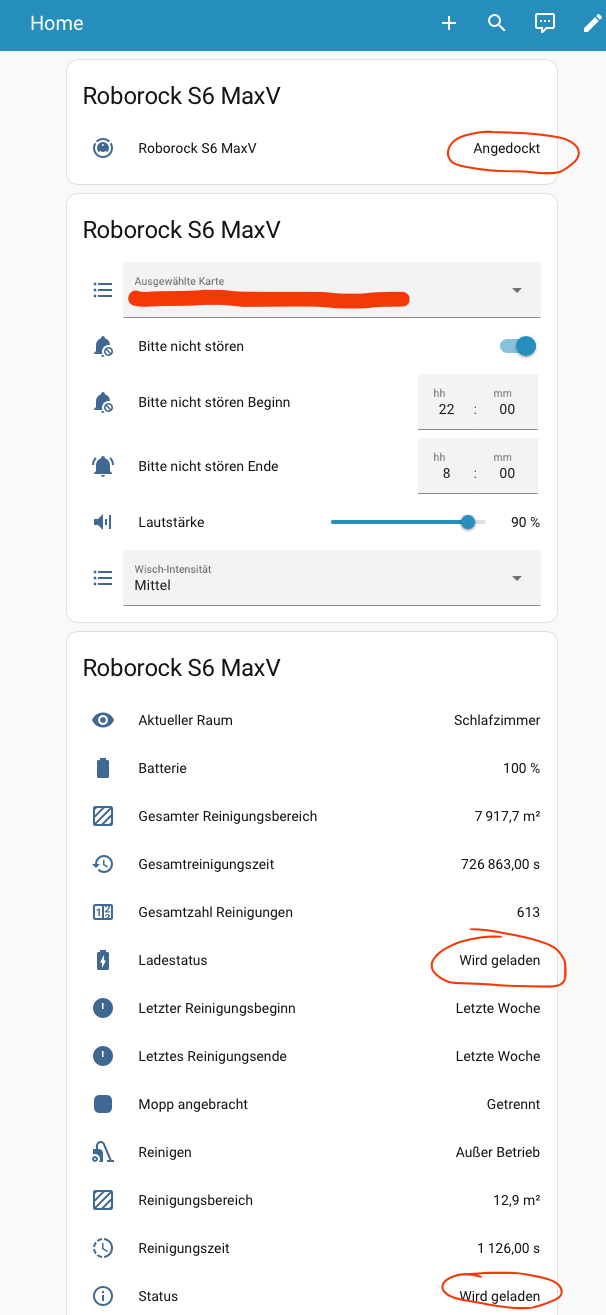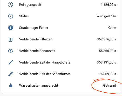Mein Roborock wirft mir haufenweise Statusdaten vor die Füße, die ich zur Steuerung verwenden könnte. Ich hab zwar keinen Wassertank o.ä., aber ich bin mir fast sicher, dass er ggf. auch aufgeführt wäre.