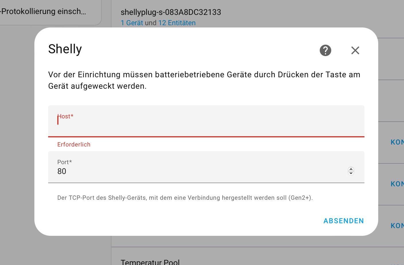 Ich kann keine IP Adresse eingeben. Es wird nur eine neue Shelly Instanz geöffnet