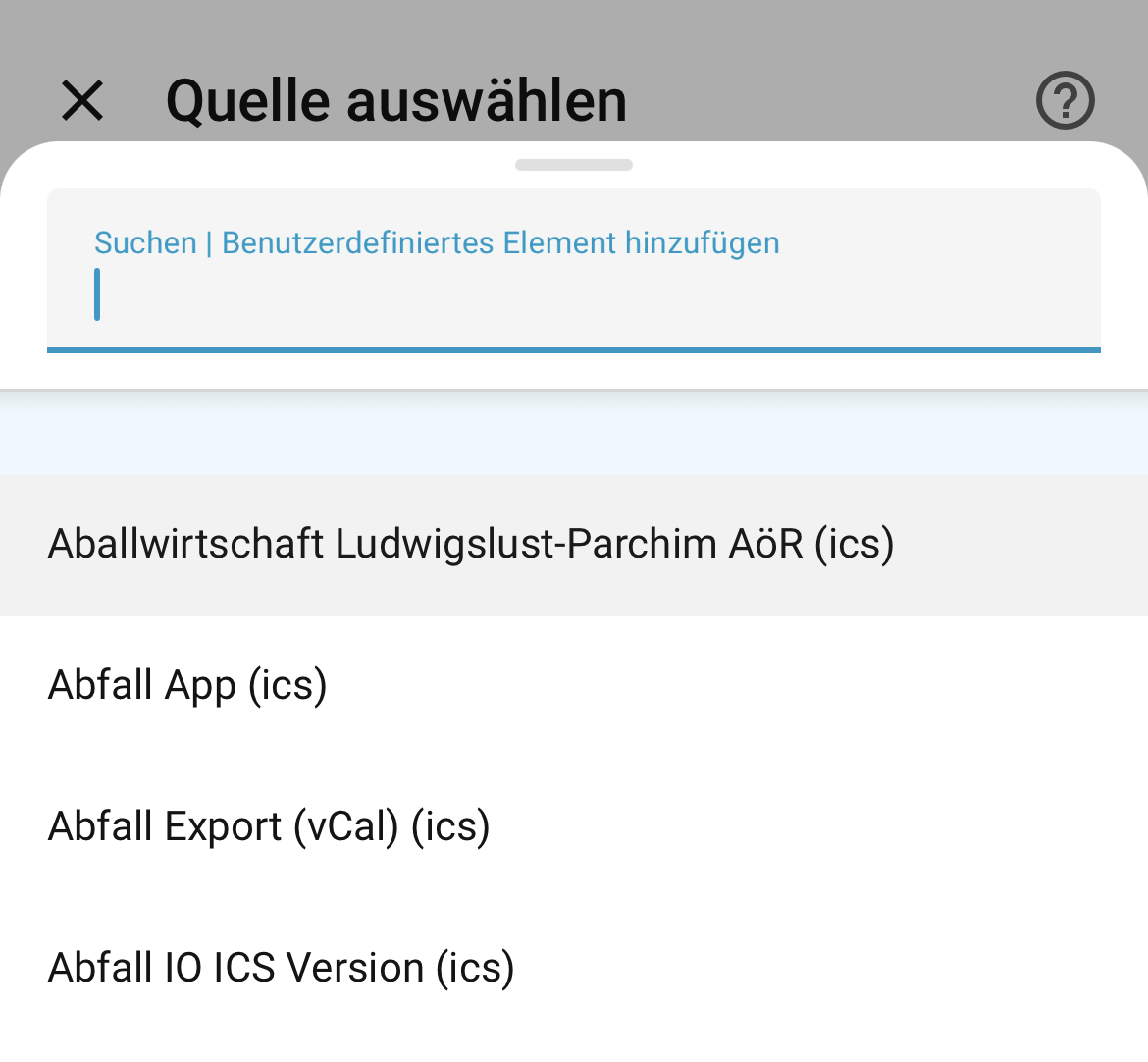 dann kommt → Quelle auswählen → “Abfall IO ICS Version”