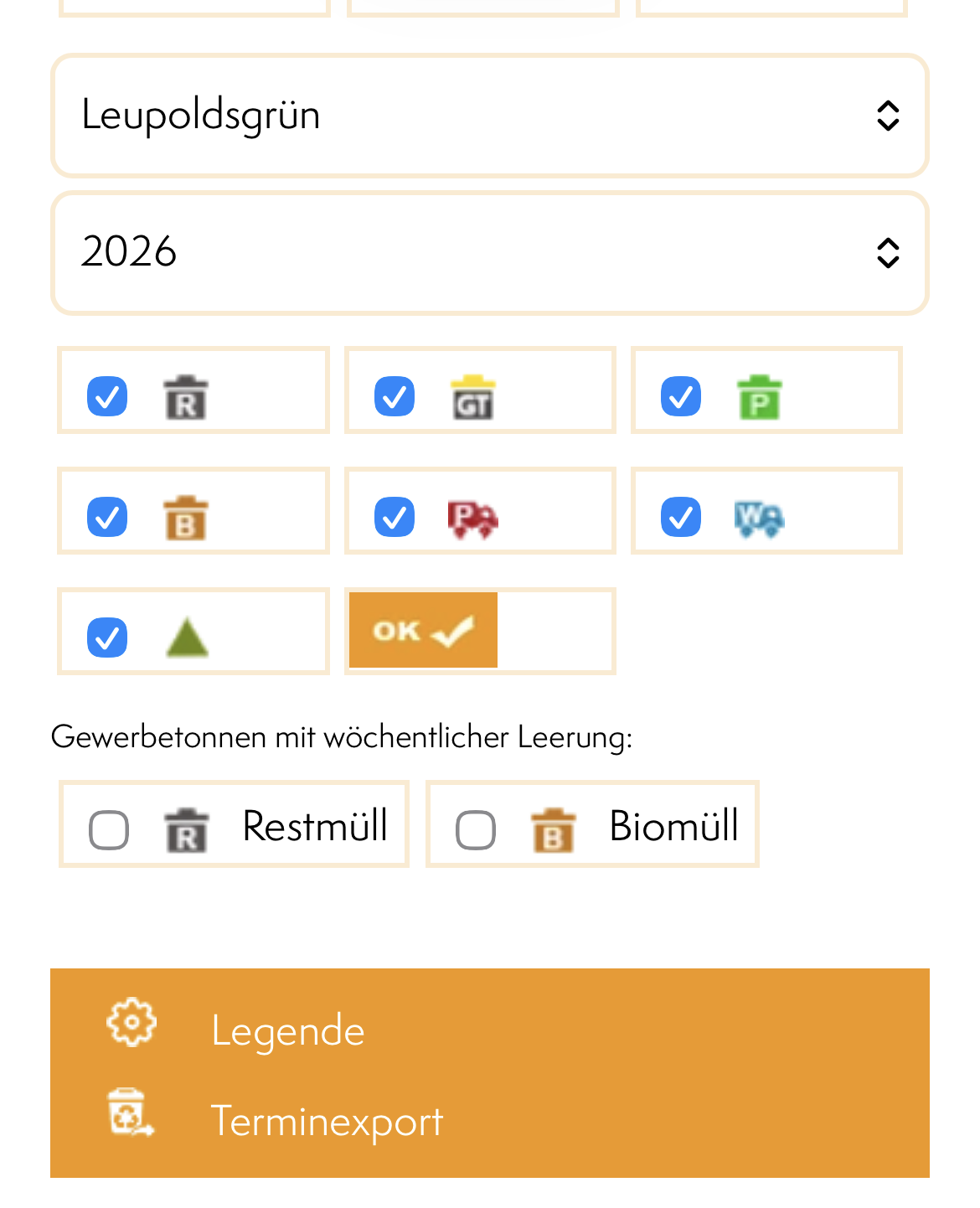 dann kommt die Konfiguration der Tonnen → alle anhaken…