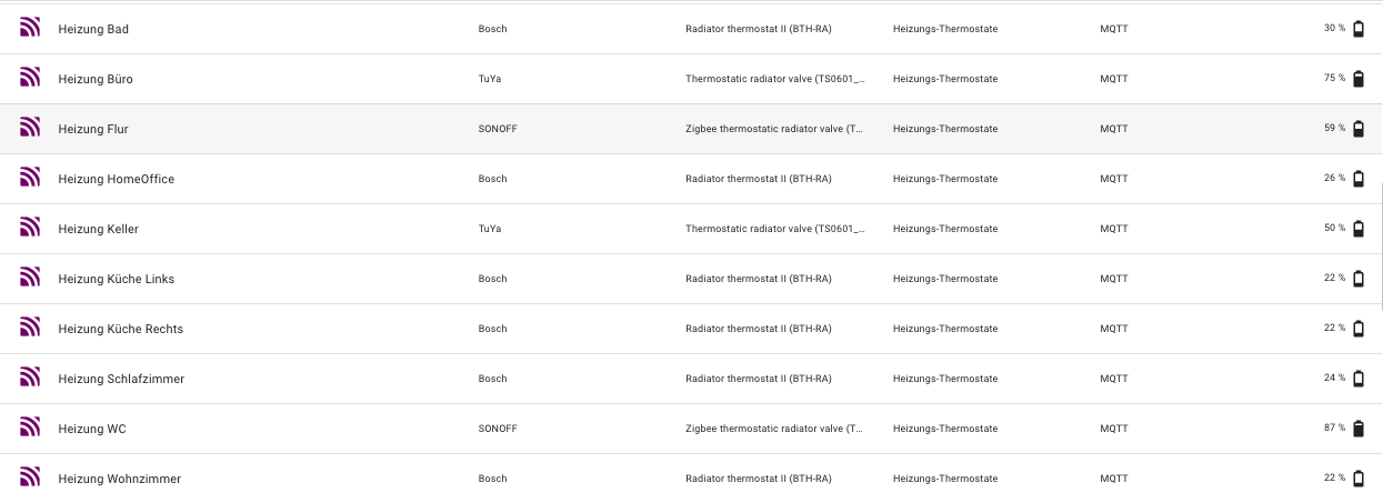 Weiterhin habe ich auch Thermostate von Sonoff und Tuya später noch mit integriert für die weniger wichtigen Räume wie Keller / Flur etc. sind auch alle mit Akkus bestückt.
