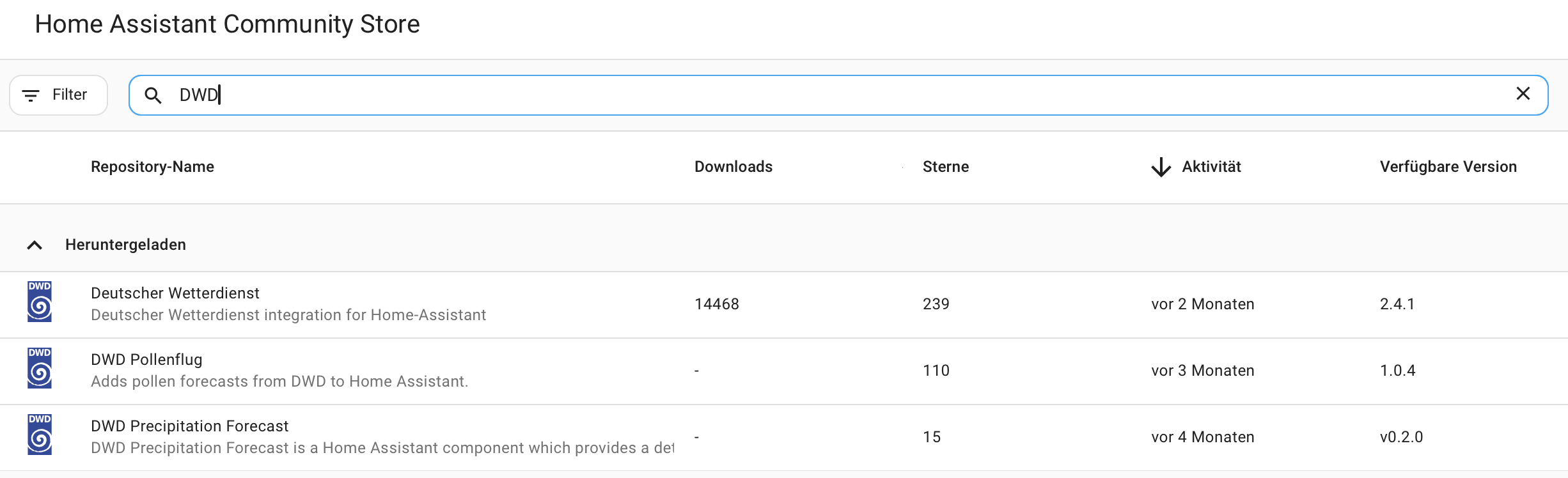 Welche DWD-Integration nutzt du denn? Es gibt dort zwei. Die von mir wegen dem cloud_coverage bevorzugte aber zuletzt im Dezember aktualisierte: