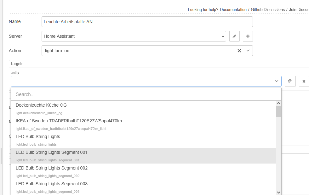 Ich habe eine Zigbee Steckdoese “Untertischbeleuchtung” Aqara diese kann ich aber als entity im node red nirgens auswählen. Diese entity ist aber über HA auswählbar. In der Küche habe ich bereits 2 weitere Zigbee Leichten anderer Hersteller in Bertrieb und konnte diese auch über nodered programieren.