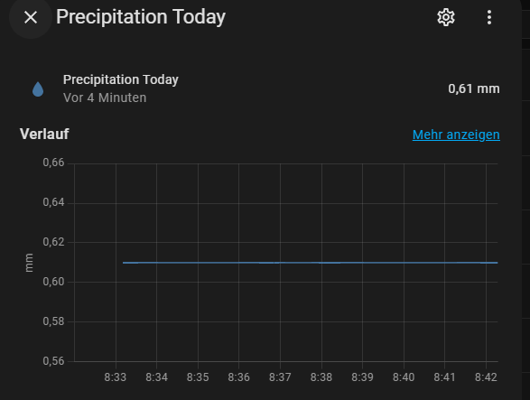 Ob es regnet und sofern das es regnen sollte die Menge in ml.