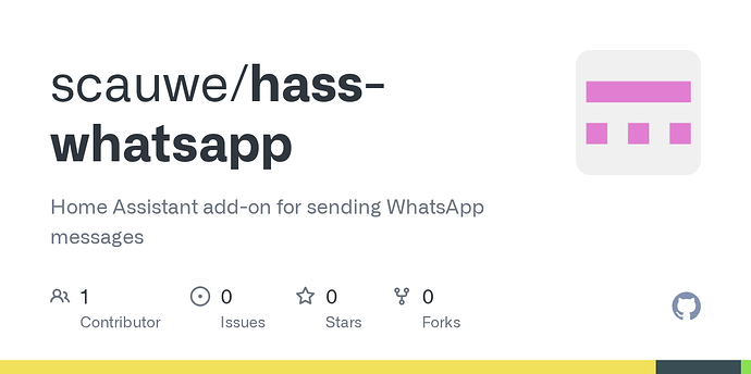 Adresse https://github.com/scauwe/hass-whatsapp wählen und anschließend das Addon Whatsapp auswählen zur Installation