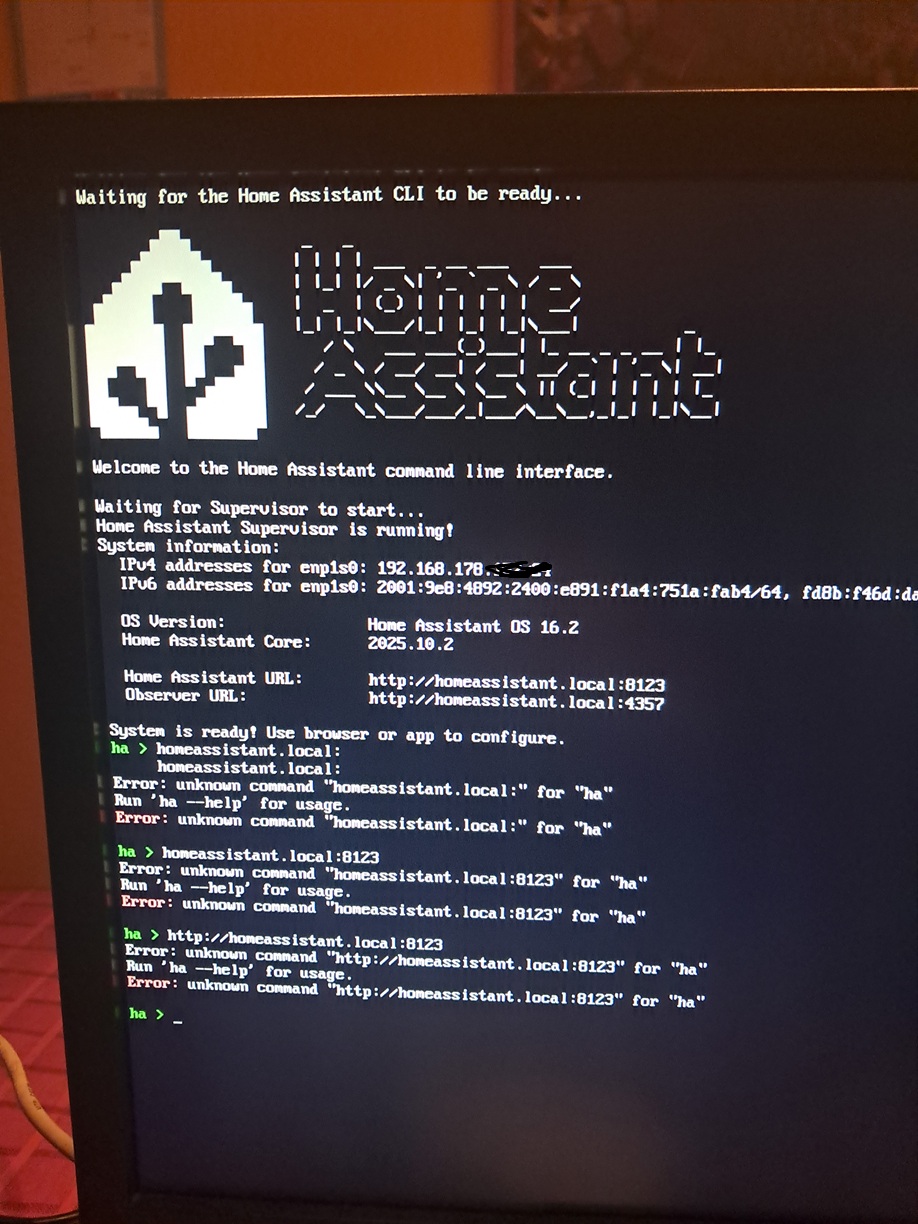 ich habe gerade zum ersten Mal HA installiert. Ich nutze einen Dell Wyse 5070. Die Installation hat auch geklappt. HA fährt hoch und meldet ready. Es teilt mir die IP - Adrese usw. mit. In den angeschauten Videos wird erklärt, dass ich jetzt die IP Adresse im Browser öffnen soll. Aber wie komme ich in den Browser. Ich finde ihn nicht. Und wenn ich die IP Adresse im Editor eingebe, passiert nichts. Was mache ich falsch?