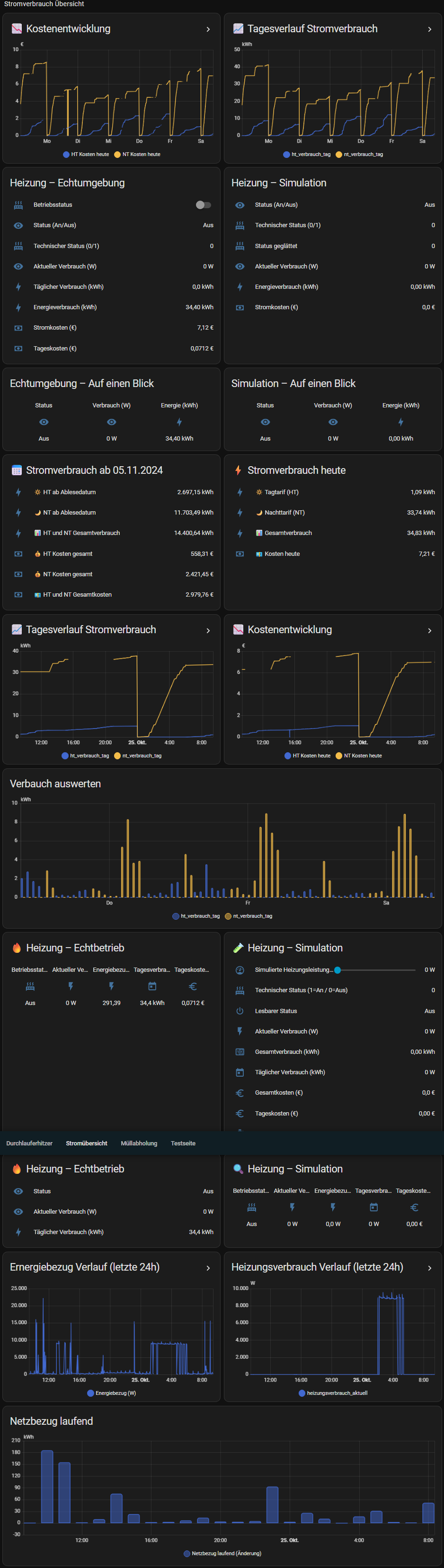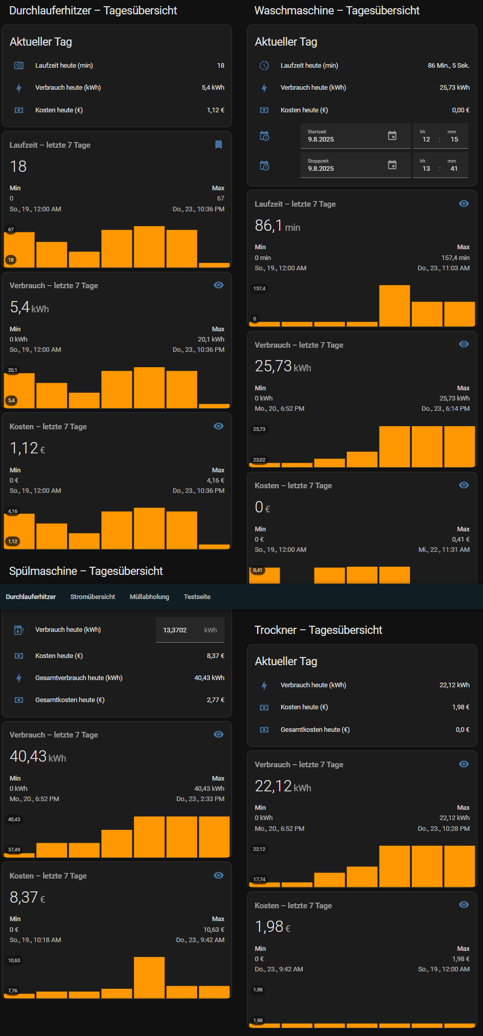 Durchlauferhitzer und Heizung werden über den Stromverbrauch und Zeit ausgewertet. (ungenau aber eine Annäherung. Zeiten beim Stromanbieter abgefragt.)