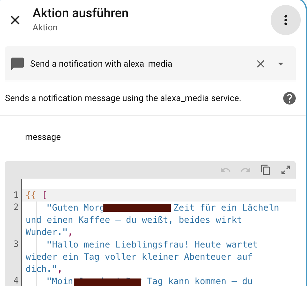 Nun ist es soweit, es funktioniert nicht mehr…. Ich kann nur wenn überhaupt, “notify” und Alexa dann auswählen. Aber muss dafür ein yaml Code haben. Das neue Update ist doch zum kotzen….. ich habe aktuell, “benschrichtigungsmeldung” aber die Funktioniert nicht mehr. Für notify brauche ich ein YAML Code. Jetzt macht das HA aber unbeliebt