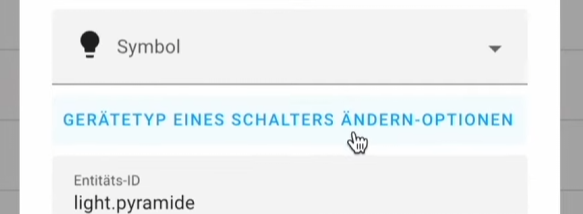 Switch Entität auswählen → Zahnrad → anzeigen als Licht.