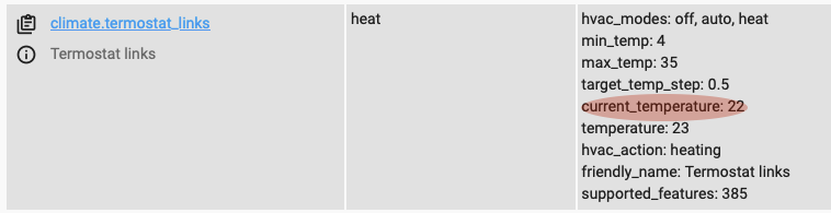 Keine der Entitäten scheint den Sensor zu enthalten und egal wie ich suche, ich finde die Entität nicht, welche den aktuellen Temperaturwert enthält, um ihn für Automationen nutzbar zu machen.