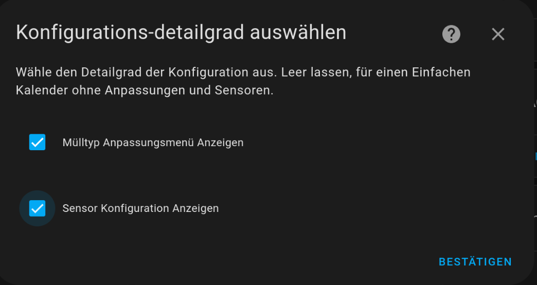 Also, wenn ich richtig verstanden habe selektiere ich die Müllarten und richte keine Sensoren ein, wenn ich über yaml das mache.