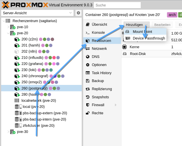 Habe es aber nicht geschafft, den Stick an ein LXC auf dem gleichen Node durchzureichen.